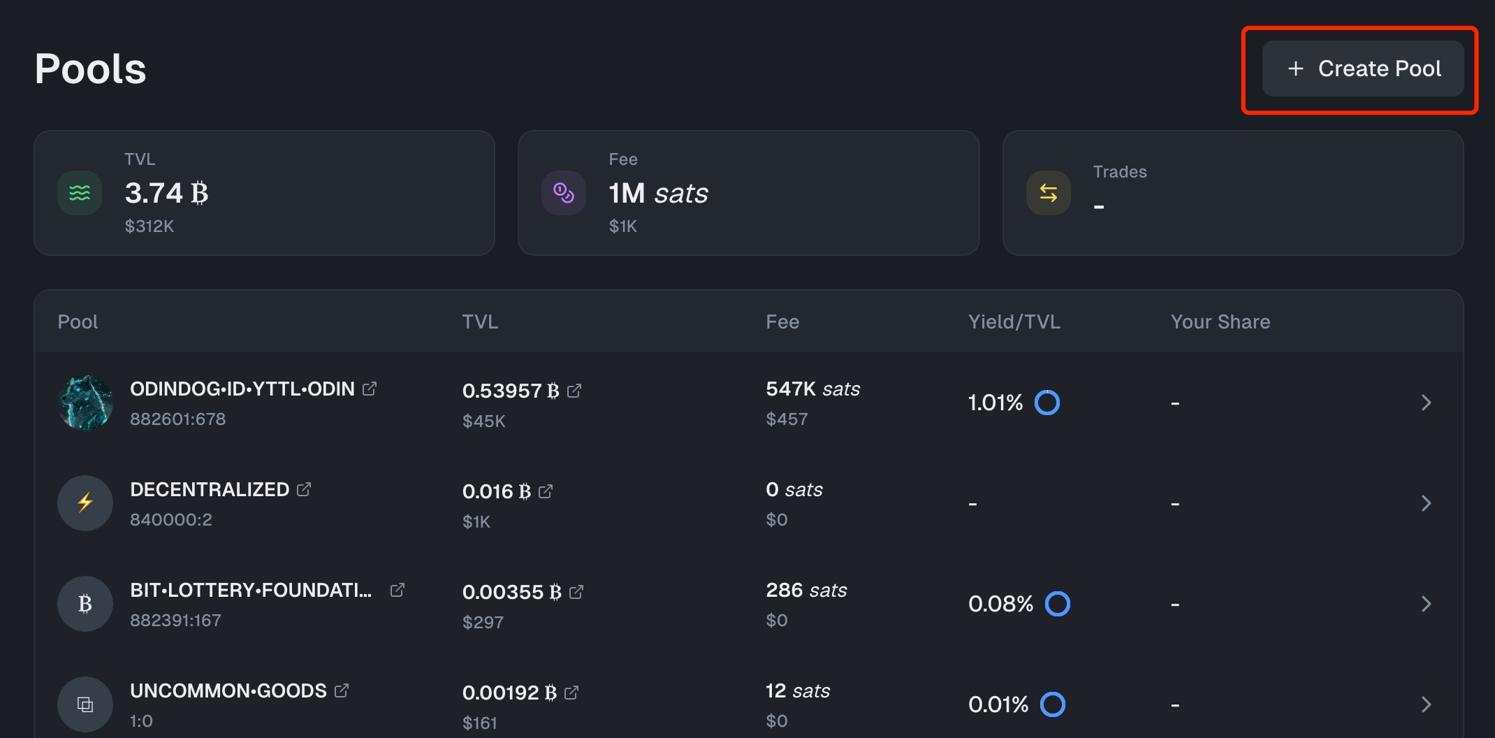 If there is no pool for the token you want to provide liquidity, click "Create Pool" to create one yourself.